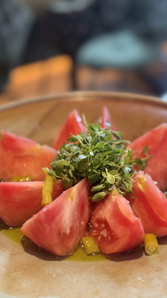 Nuestra visita a El Albero Becerril comenzó con unos impresionantes torreznos a modo de aperitivo, que nos condujeron a un sensacional tomate aliñado con piparras. Un magnífico producto de la huerta que se convierte en un entrante perfecto antes de pasar a saborear unos originales bocartes en matrimonio de conveniencia que preparan con una base de bocarte frito coronado con anchoa, boquerón y piparra que es un verdadero espectáculo.