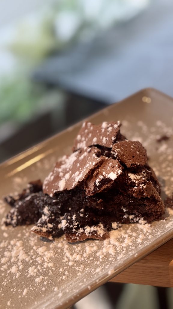 Terminamos la velada con una irresistible tarta de chocolate casera que llega a la mesa recién horneada y que enamorará a los paladares más golosos.